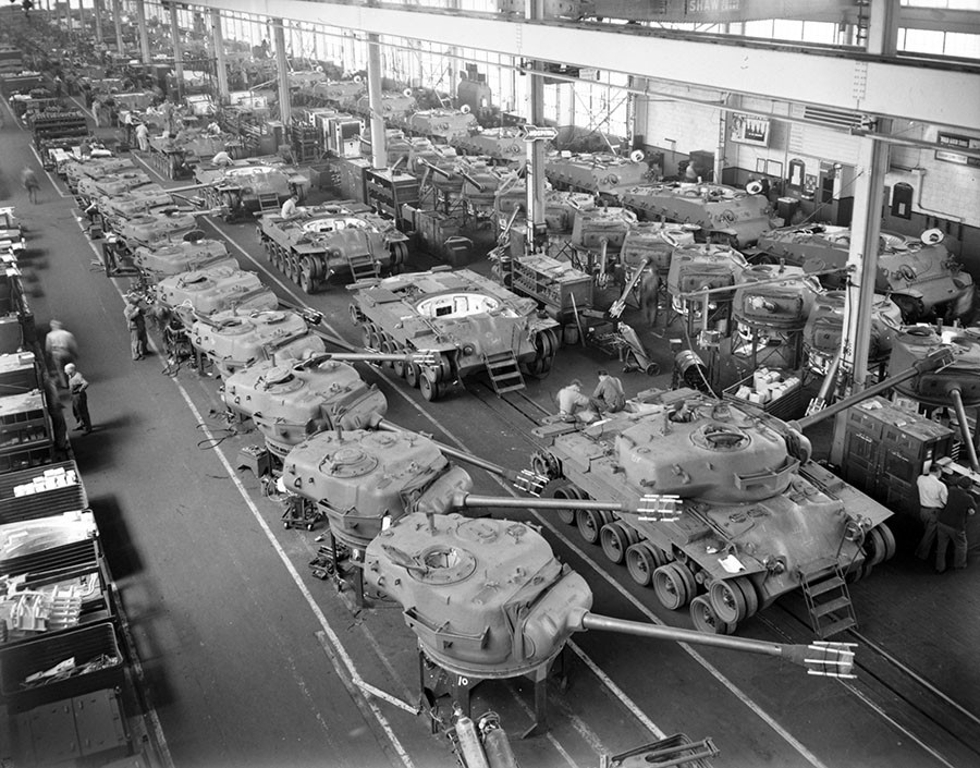 General Motors converted to war production in just 29 days after ending civilian lines and ultimately contributed 10 percent of all US war production.